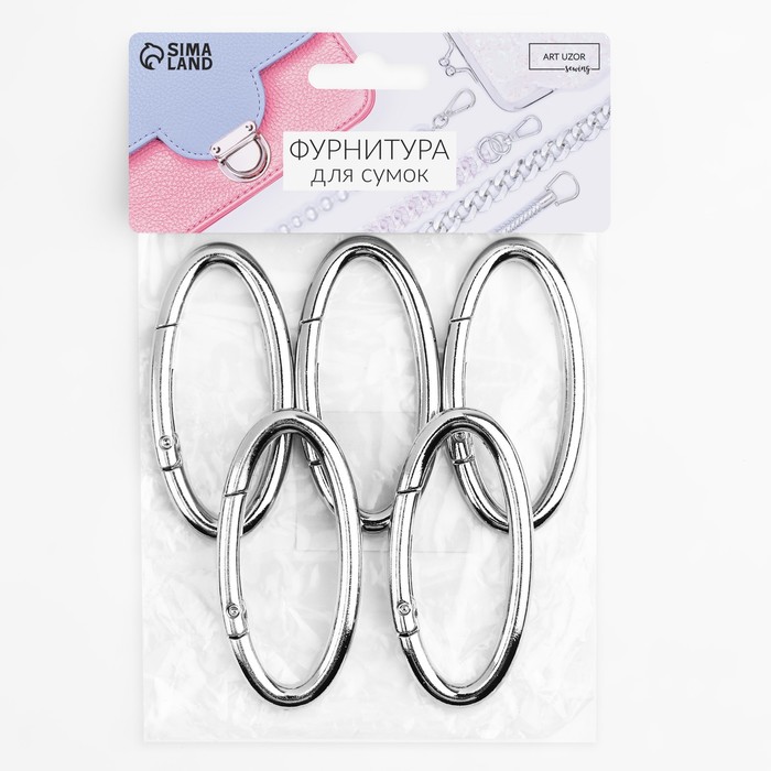 Овал-карабин, 6.5×3.1 см / 54×6 мм, 5 шт., цвет серебряный — Характеристики