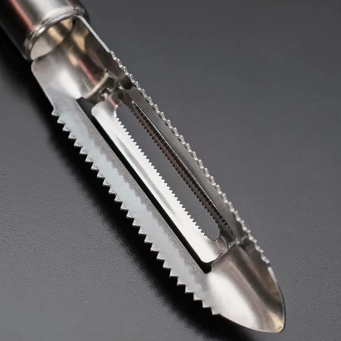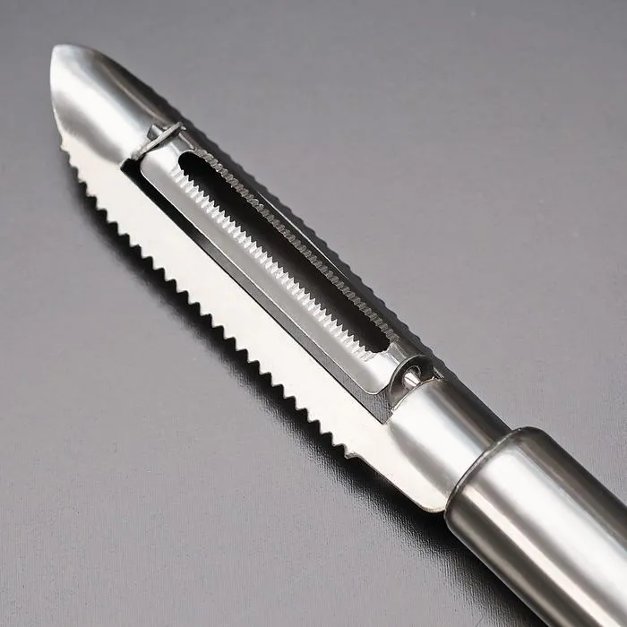 Пиллер (вертикальная овощечистка) имеет сходство со столовым ножом, но рабочей поверхностью в этом случае выступает не всё металлическое полотно, а только встроенное в него лезвие. Положение овощечистки в pуке схоже с хватом кухонного ножа. После надреза и зацепления пиллера за кожуру, вы можете двигать овощерезку вдоль плода, медленно поворачивая овощ, или очистить продукт несколькими отрывистыми движениями.