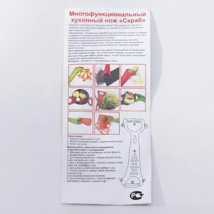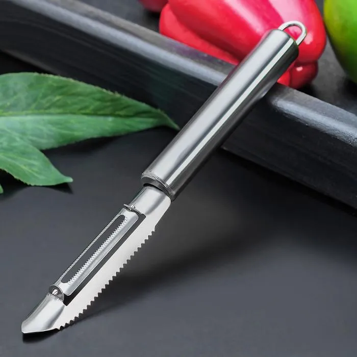 Кроме самого лезвия, на боку овощечистки есть специальный зубец для удаления глазков из картошки и вырезания бороздок на других овощах и фруктах, что делает ее многофункциональной.