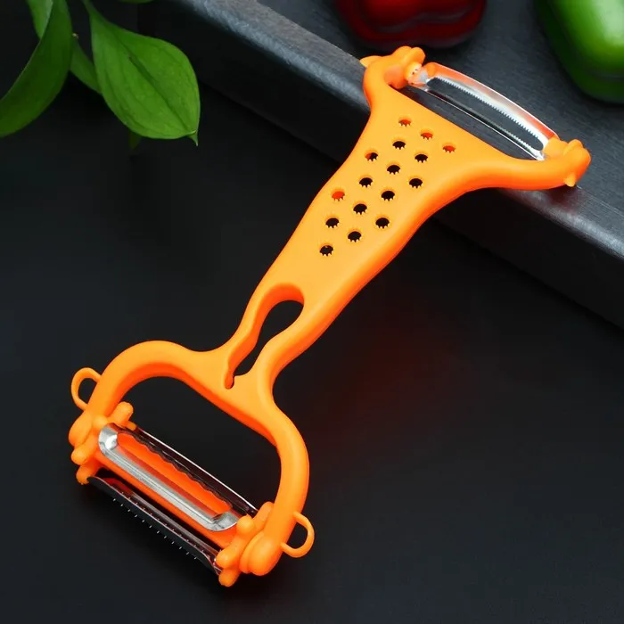 Ручная овощечистка идеально подходит для снятия кожуры с различных фруктов и овощей. Рабочая сторона изделия с двумя лезвиями изготовлена из нержавеющей стали. Прочный и устойчивый к коррозии сплав долго остается острым и не теряет своей функциональности при длительном использовании.