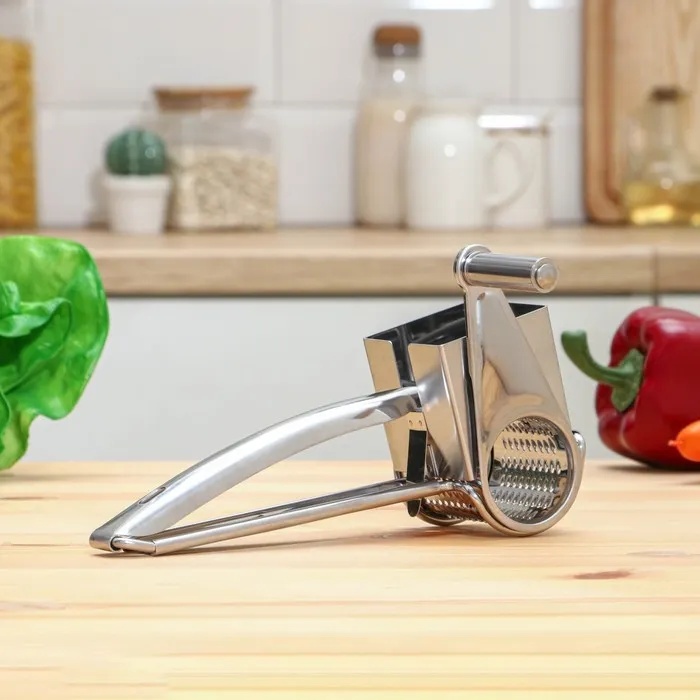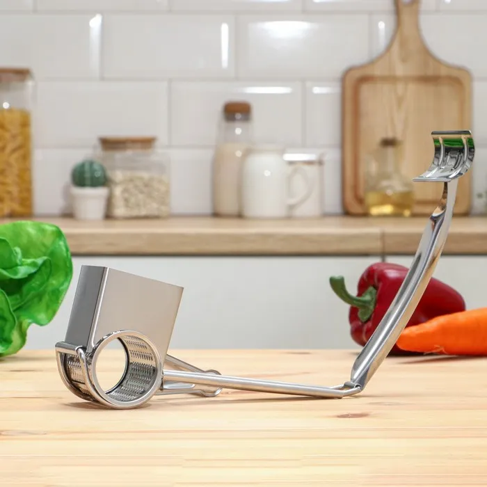 - Комфорт в использовании: эргономичная ручка из нержавеющей стали удобна в хвате и позволяет легко управлять работой овощерезки.