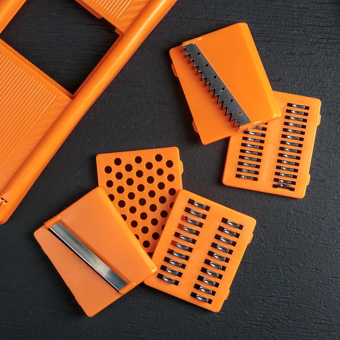 Овощерезка-терка изготовлена из пластика высокого качества, имеет эргономичную ручку и лезвия из нержавеющей стали, которые обладают коррозиестойкостью и сохраняют свою остроту в течение долгого времени. Она проста в использовании и легко моется, что делает ее идеальным инвентарем для любой хозяйки.