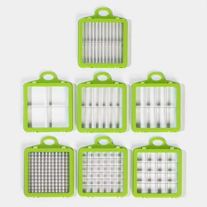 - Универсальность: 22 разных инструмента позволяют нарезать продукты разными способами, что делает овощерезку Chopper более функциональной.