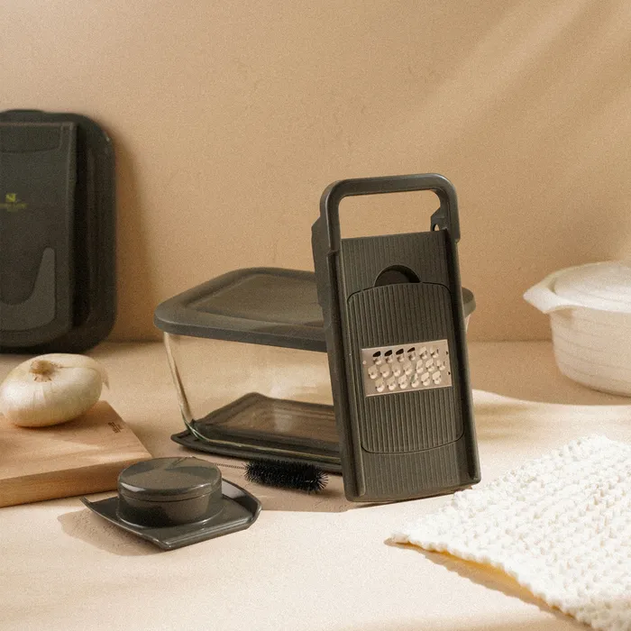 Главное преимущество овощерезки — её универсальность. В комплект входит контейнер для нарезки, который также можно использовать в качестве дуршлага, что упрощает процесс приготовления пищи. Нескользящая ручка обеспечивает комфортное использование, а возможность мытья в посудомоечной машине экономит ваше время и силы.