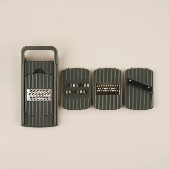 - Многофункциональность: 9 сменных насадок позволяют готовить нарезку любой формы и размера — от тонких ломтиков до кубиков и терки.