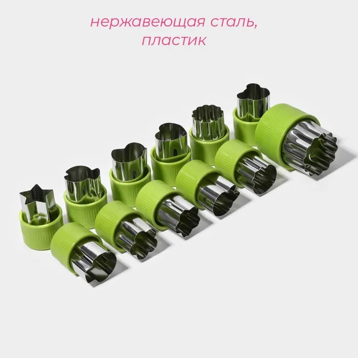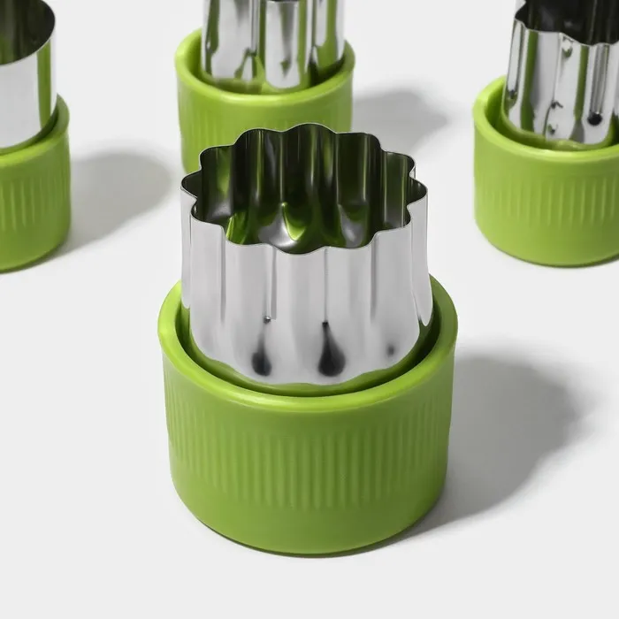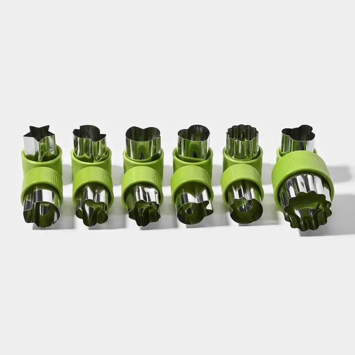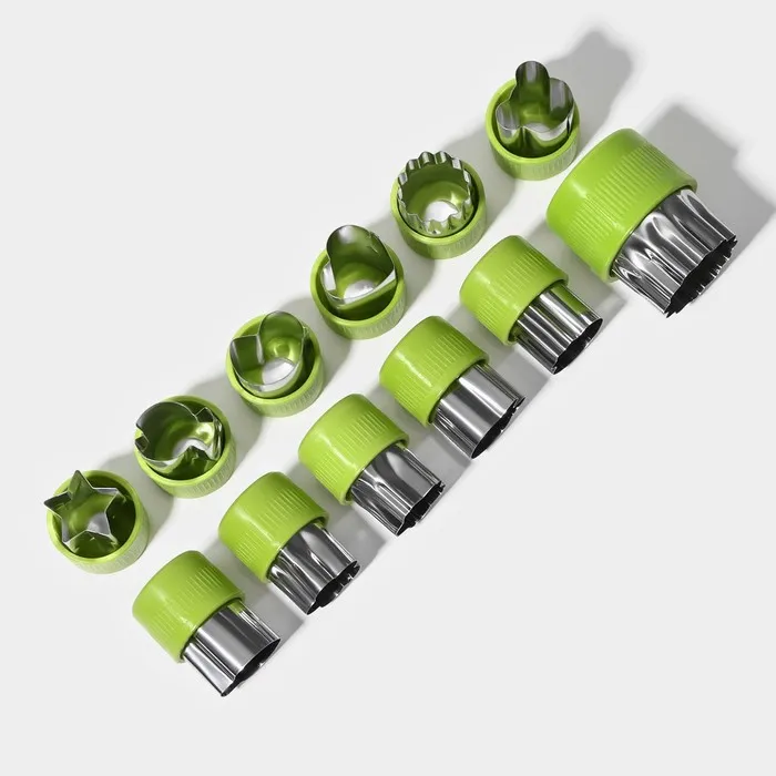 Овощерезки Доляна «Палитра», набор 12 шт., нержавеющая сталь, зелёные — Характеристики