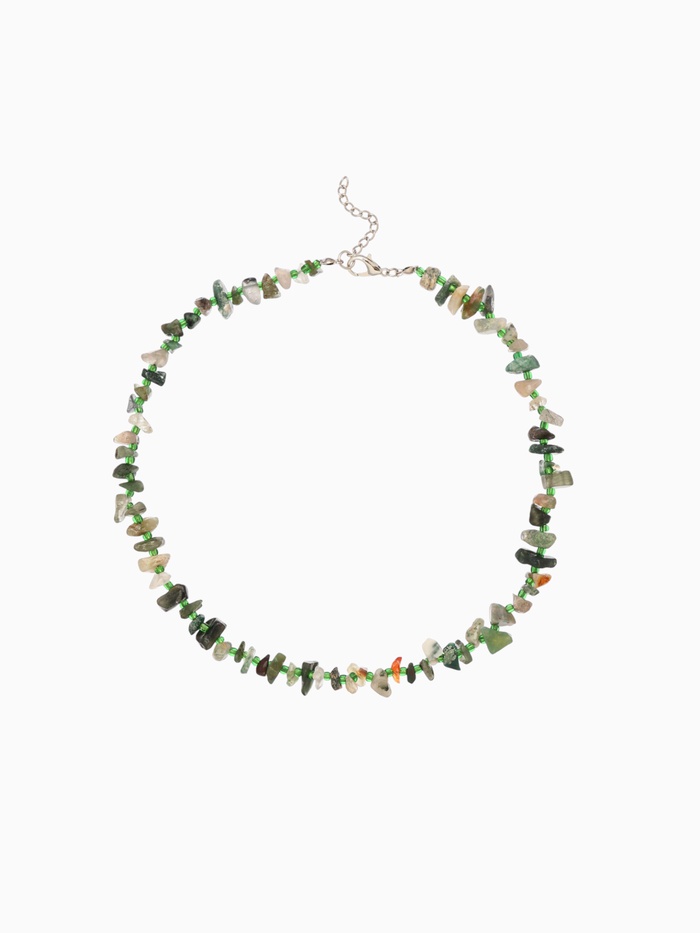 Образ морского побережья, глубоко укоренившийся в нашей памяти, вдохновляет многих на создание стильных вещей. Зеленый камень напоминает о глубине океанов и богатой флоре морских вод, визуально увеличивая чувственность и нежность женского образа. Колье подчеркивает естественную женскую красоту, даря ощущение близости к природе и прибавляя образу живости и динамичности.