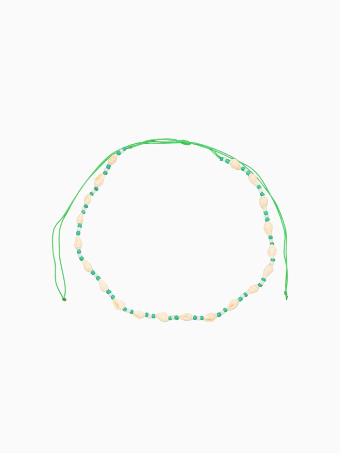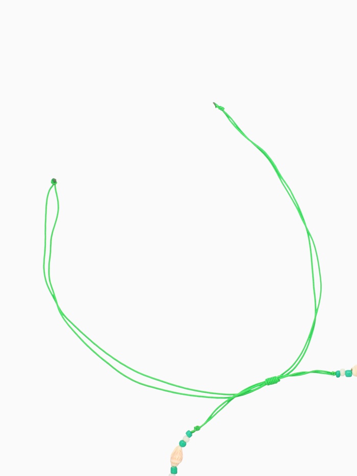 Колье «Халия» — не просто украшение, а тихое напоминание о тропическом береге. Его длина 35 см подходит как для женщин, так и для девочек, а зелёный текстильный шнур ложится на кожу мягко, без раздражения. Вплетённые ракушки — не декор, а фрагменты пляжа, запечатлённые в простом, но выразительном силуэте.