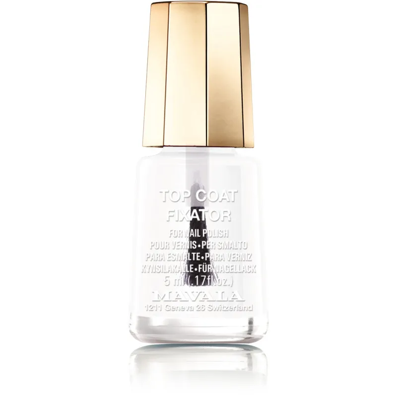 Mavala Minicolor Top Coat Fixator — это веганское, бесцветное и легко наносимое верхнее покрытие. Оно придаёт цветному лаку дополнительный блеск и продлевает его стойкость. Одного флакона хватит примерно на 10 нанесений.