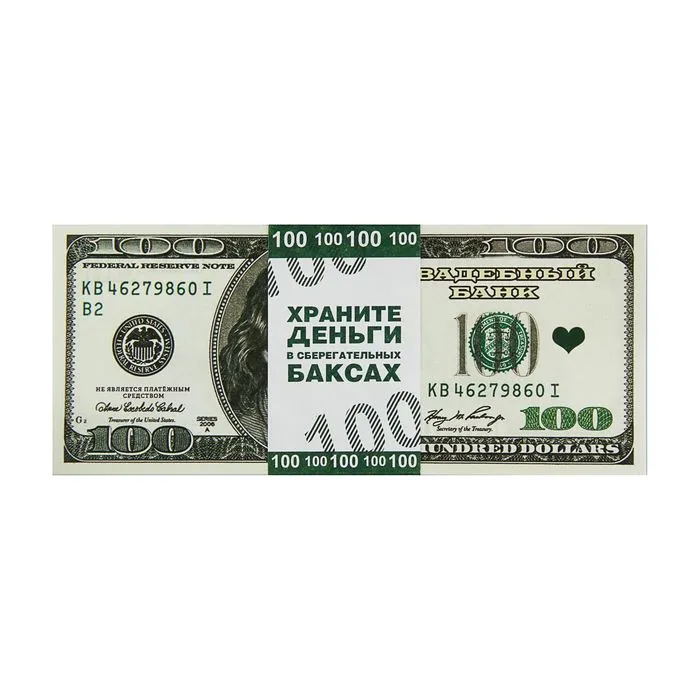 Блок состоит из 80 купюр, упакованных в бумажную обертку с оригинальной надписью.