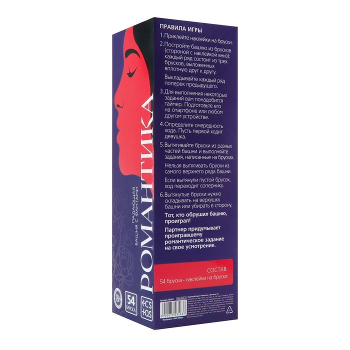Падающая башня для пар «Романтика», с фантами, 54 бруска, 18+ — Характеристики