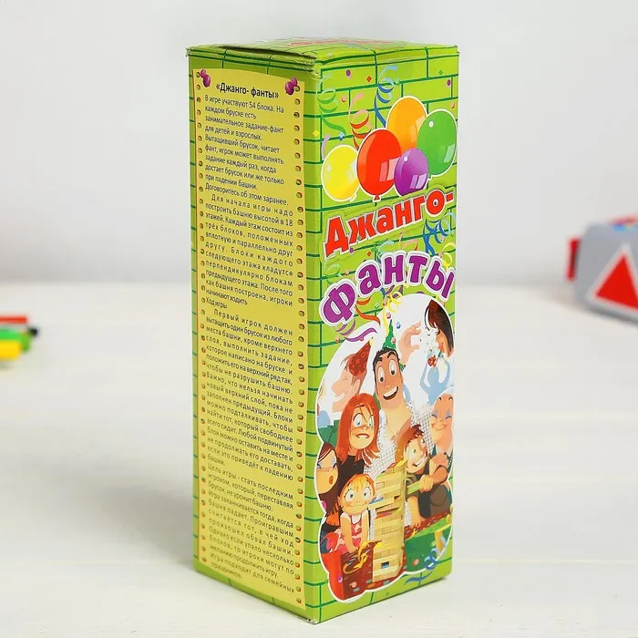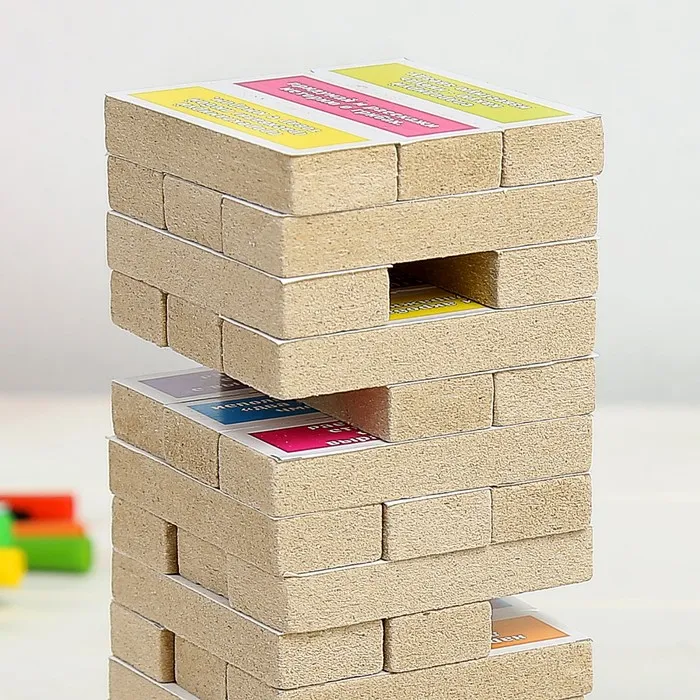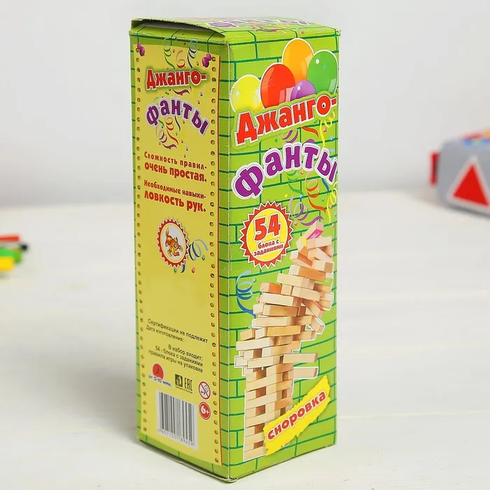Падающая башня дженга, настольная игра "Фанты", с заданиями, 54 бруска, 18.5 х 6.5 см — Характеристики