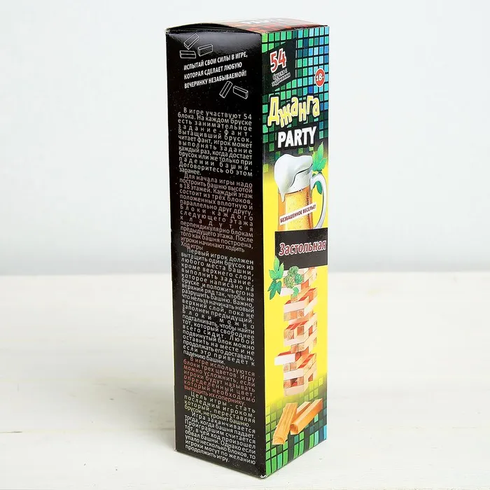 Падающая башня дженга, настольная игра, «Вечеринка», 54 бруска с заданиями, 30×8 см — Характеристики