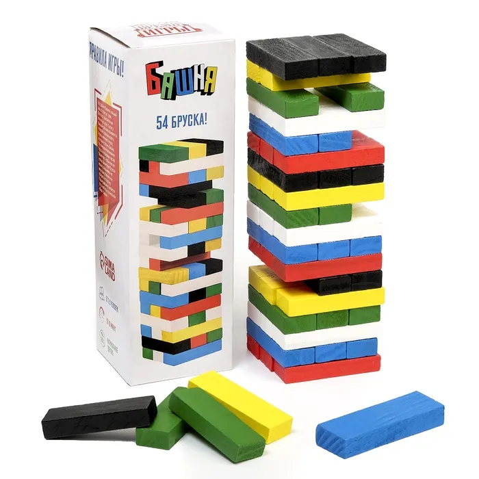 Падающая башня «Новогодняя», 54 бруска и наклейки — Характеристики