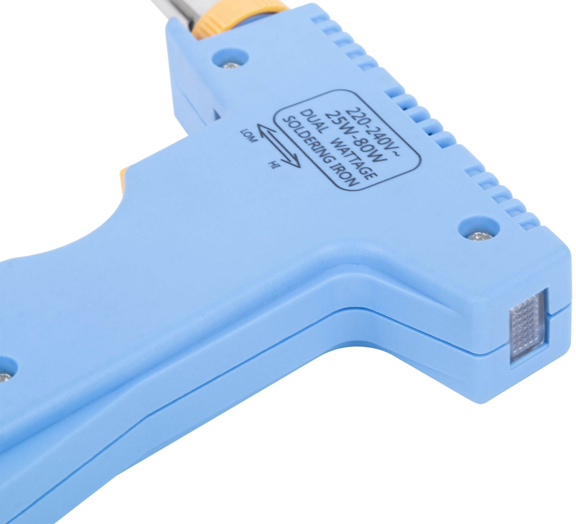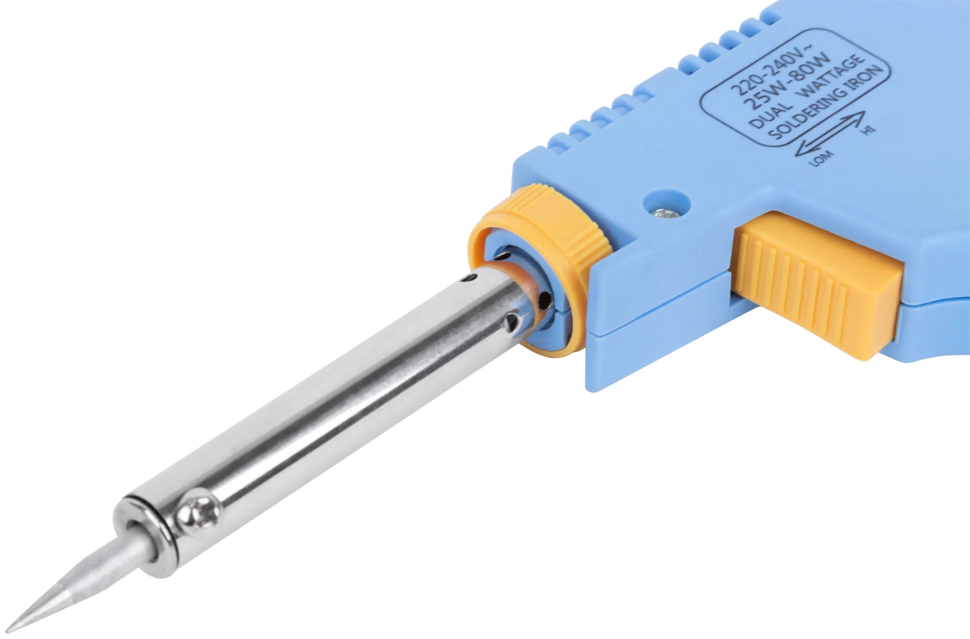 • Два режима мощности (25 Вт и 80 Вт) для различных задач пайки.