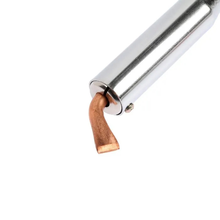 Паяльник — удобный инструмент для металлообработки различных электронных деталей: проводов, печатных плат и прочего. Заострённая форма рабочего клинка гарантирует высокую точность пайки. Данная модель имеет долгий срок службы благодаря высокому качеству материалов, а эргономичная ручка и небольшой вес изделия обеспечивают максимальный комфорт во время эксплуатации.