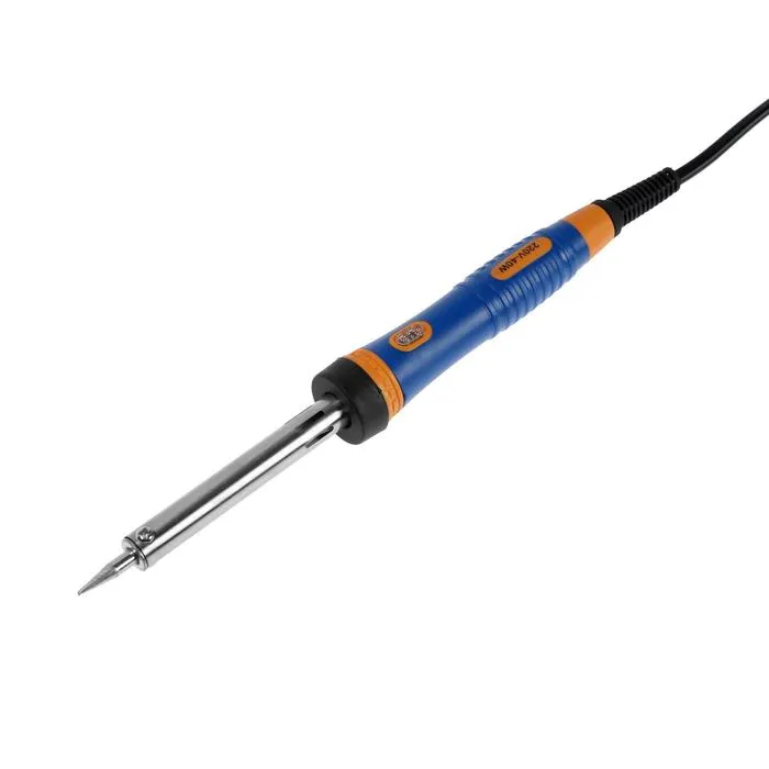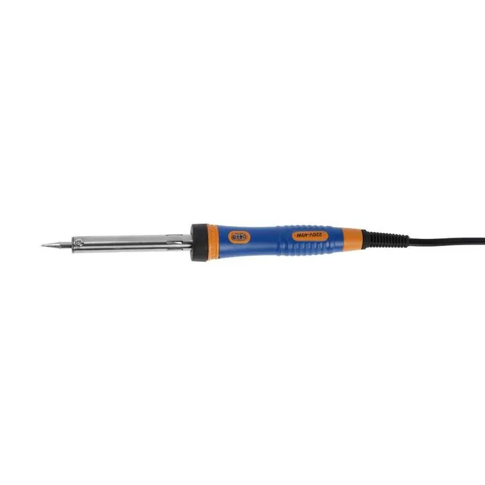 Паяльник питается от сети в 220 В. и имеет мощность в 40 Вт, благодаря чему происходит быстрый нагрев жала. Специальный изоляционный слой предотвращает случайный контакт с токоведущей частью во время работы с инструментом.