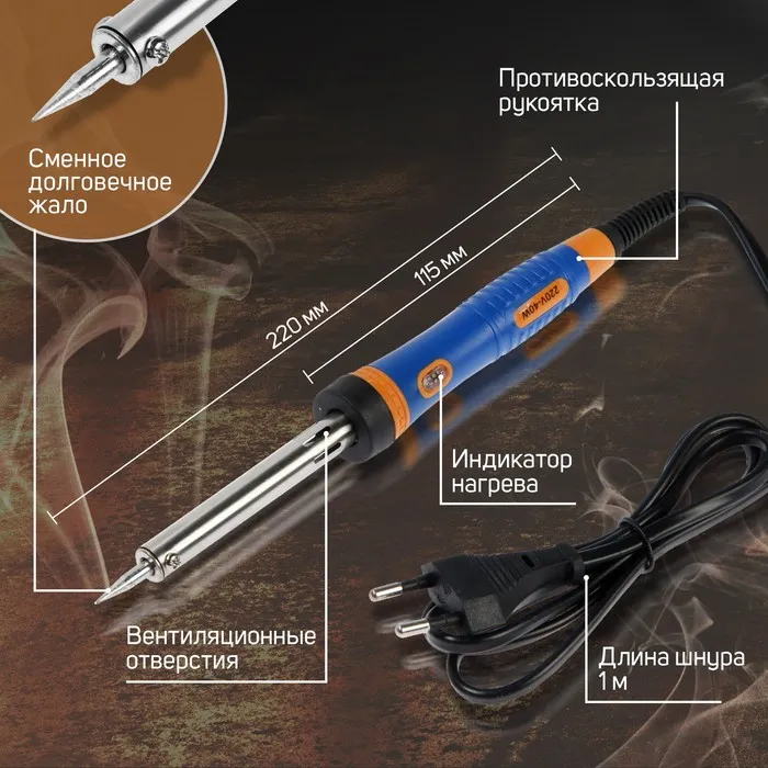 Инструмент применяется для следующих видов работ: пайка, лужение, монтаж металлических деталей и работ по дереву.