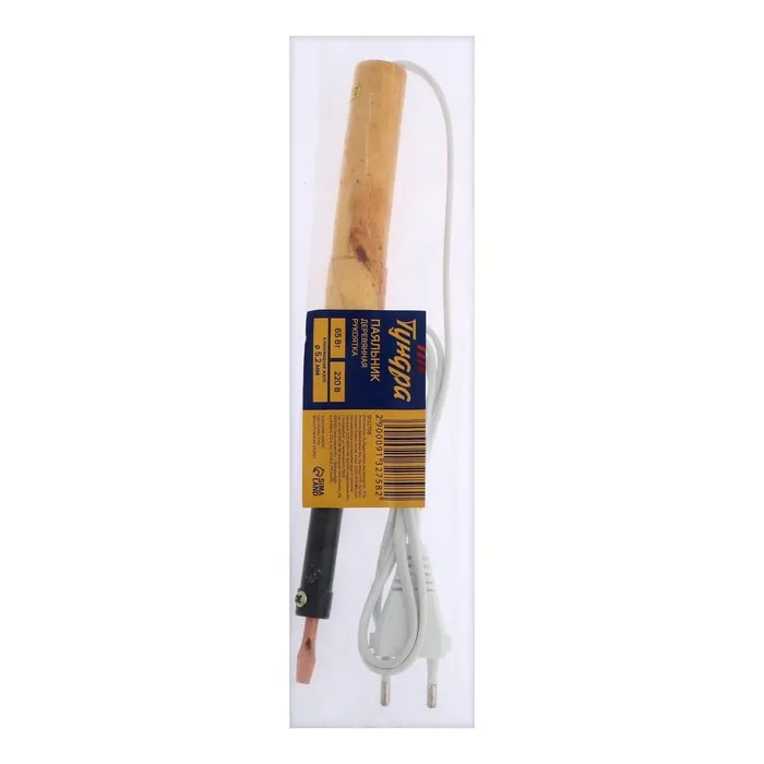 Паяльник ТУНДРА, ЭПСН, деревянная рукоятка, клиновидное жало d=5.2 мм, 65 Вт, 220 В — Характеристики