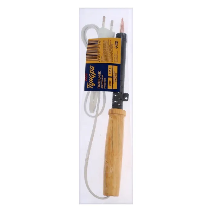 Паяльник ТУНДРА, ЭПСН, деревянная рукоятка, клиновидное жало d=6.2 мм, 80 Вт, 220 В — Характеристики
