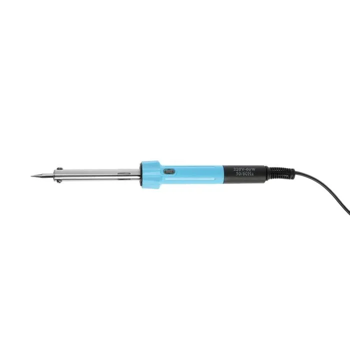 С помощью светового индикатора, встроенного в инструмент можно с лёгкостью определить нагрев инструмента. Паяльник питается от сети в 220 В. и имеет мощность в 60 Вт, благодаря чему происходит быстрый нагрев жала. Специальный изоляционный слой предотвращает случайный контакт с токоведущей частью во время работы с инструментом.