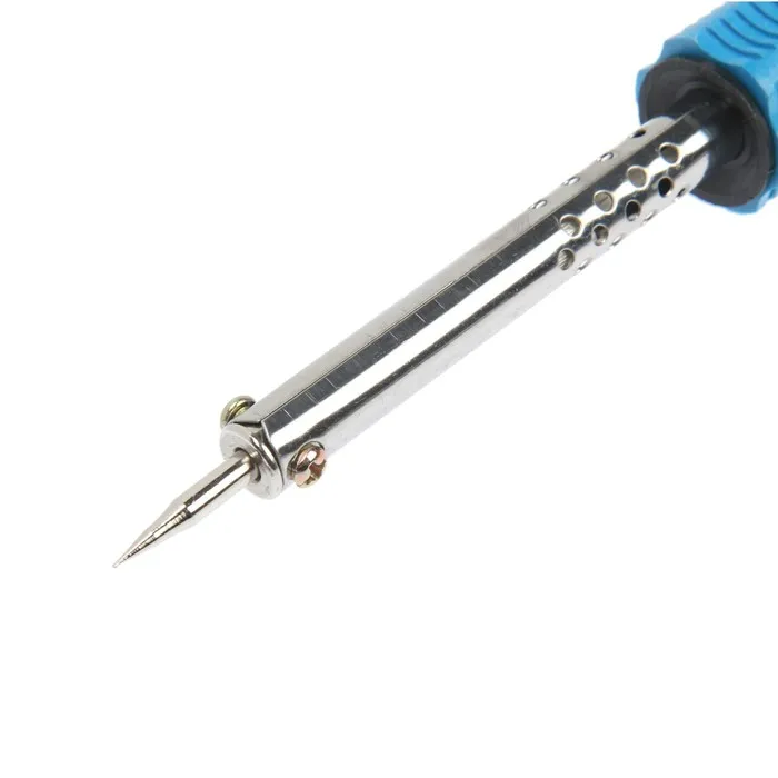 Паяльник питается от сети в 220 В. и имеет мощность в 30 Вт, благодаря чему происходит быстрый нагрев жала. Специальный изоляционный слой предотвращает случайный контакт с токоведущей частью во время работы с инструментом.