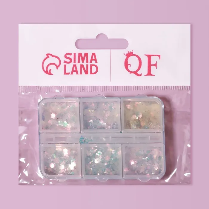 Пайетки для декора, 6 ячеек, разноразмерные, разноцветные — Характеристики
