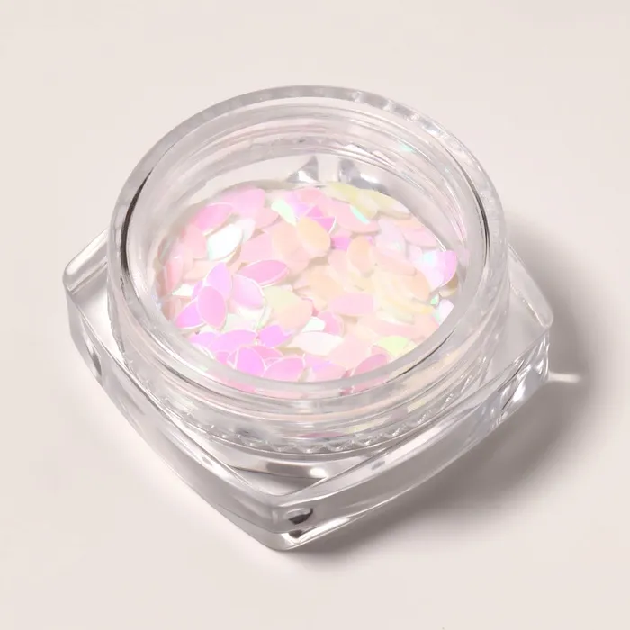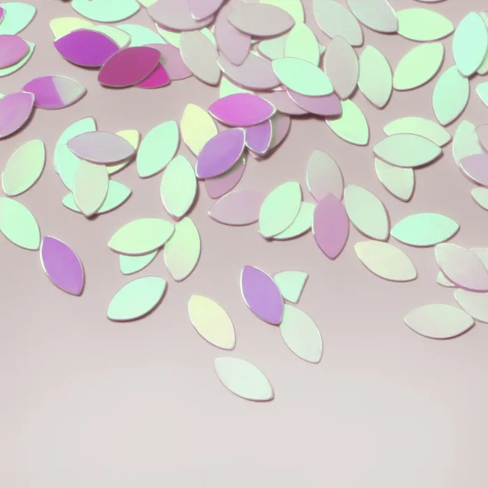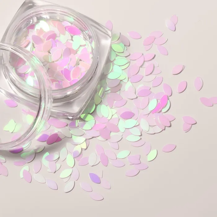- Голографические пайетки в форме лепестков станут ярким акцентом на ваших ногтях.