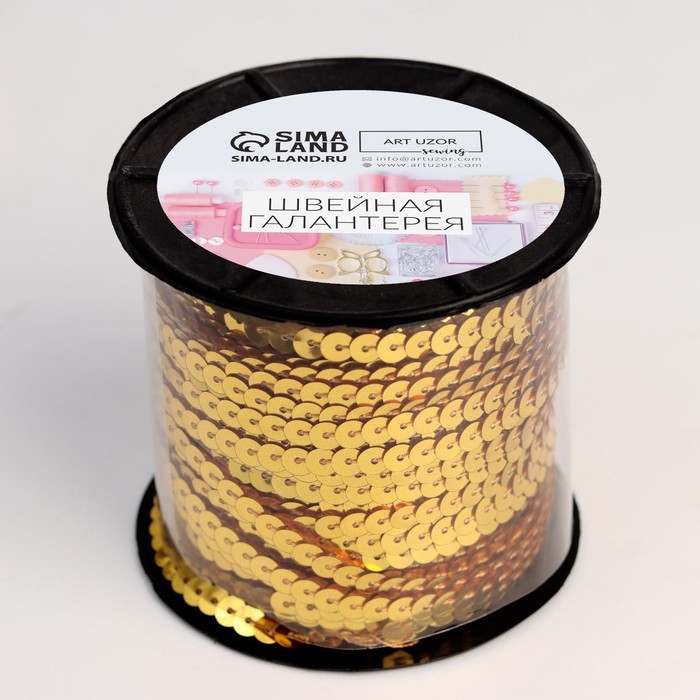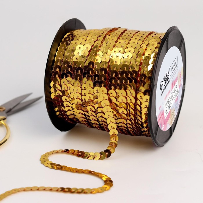 Пайетки на нити, 6 мм, 91±1 м, цвет золотой №242 — Характеристики