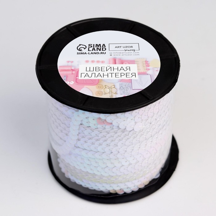 Пайетки на нити, перламутр, 6 мм, 91 ± 1 м, цвет белый №51 — Характеристики