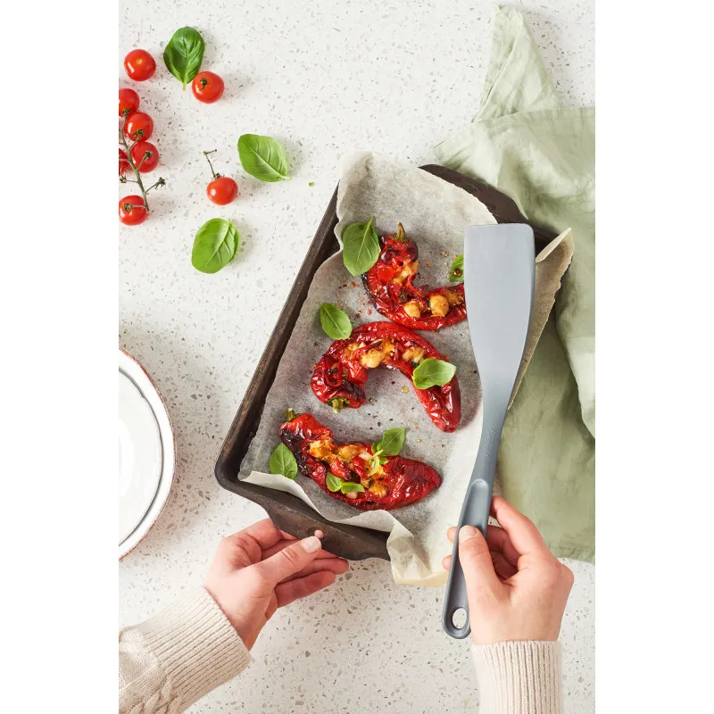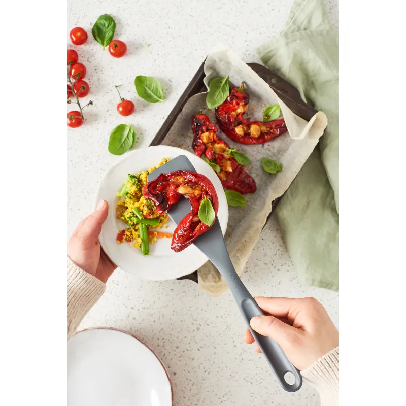 Лопатка GastroMax Bio – это экологичный выбор для вашей кухни. Этот узкий инструмент, произведенный в Швеции, отличается гибкостью, что позволяет ему легко скользить под пищей. Углеродный след этого продукта более чем на 50 % меньше по сравнению с традиционными пластиковыми кухонными принадлежностями. Лопатка изготовлена из биопластика, стекловолокна и полиамида. Она не царапает покрытые кастрюли и сковороды, выдерживает температуры до 250 °C и подходит для мытья в посудомоечной машине. Размеры: 5 x 5 x 29 см, цвет серый.