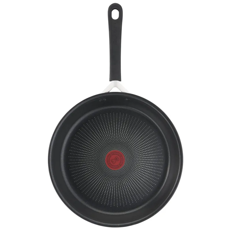 Сковорода имеет антипригарное и чрезвычайно прочное покрытие Tefal Titanium, усиленное минеральным наполнителем, а верхний слой укреплен частицами титана. Покрытие Titanium служит в два раза дольше стандартных покрытий Tefal и отлично подходит для ежедневного использования. Толстое индукционное основание Thermo-Fusion™ обеспечивает более быстрое нагревание и равномерное распределение тепла. Покрытие легко чистится и полностью безопасно, не содержит свинца, кадмия или соединений PFOA. Рукоятка из силикона обеспечивает надежный захват. Сковорода устойчива к нагреву в духовке до 210°C и совместима со всеми типами плит, включая индукционные.