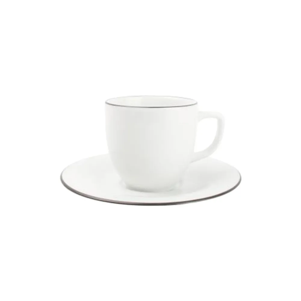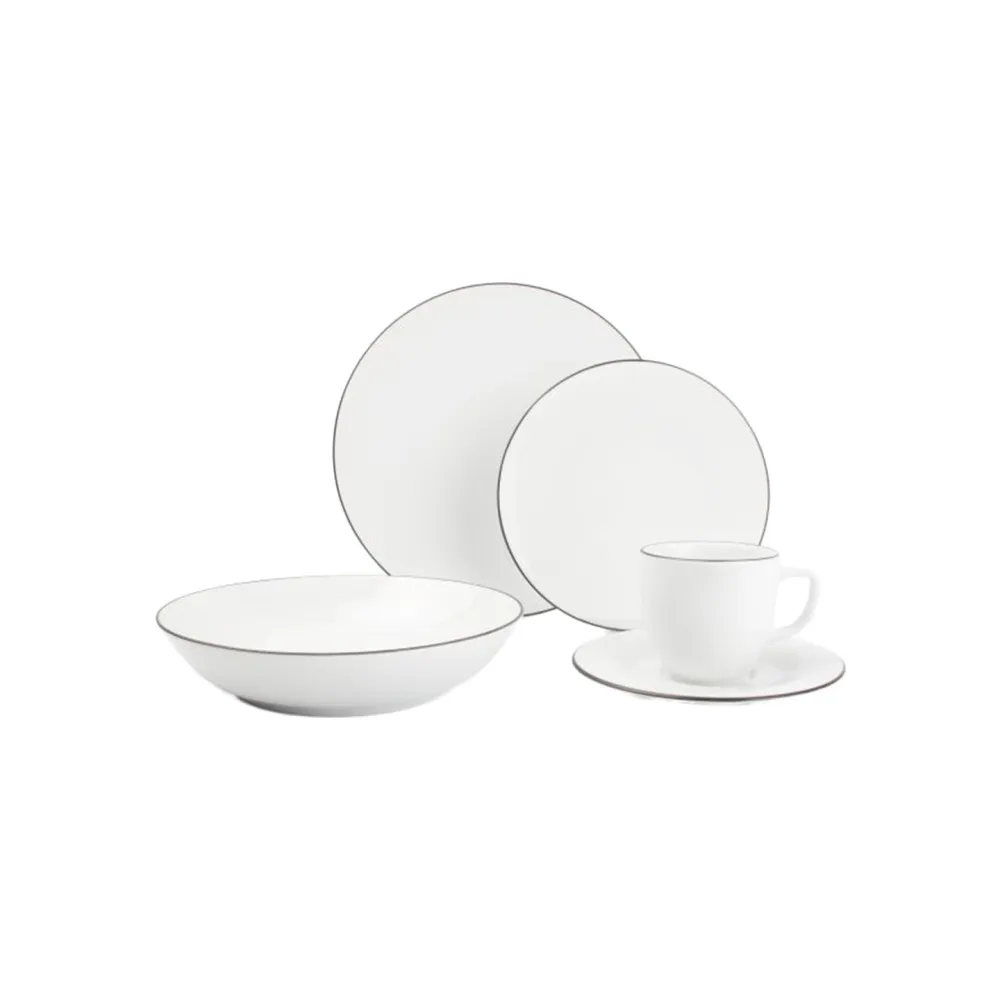 В коллекции посуды «Puro» современные формы и качественный фарфор сочетаются утончённым образом, а стильный черный ободок завершает образ. Набор включает 20 предметов: