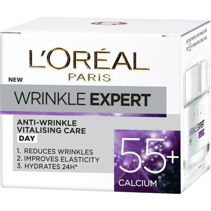 Дневной крем L'Oréal Paris Wrinkle Expert 55+ содержит кальций и предназначен для борьбы с морщинами. Этот крем для зрелой кожи наполняет ее жизненной энергией, разглаживает морщины и увлажняет до 24 часов. Разработан специально для потребностей кожи после 55 лет. Объем упаковки: 50 мл.