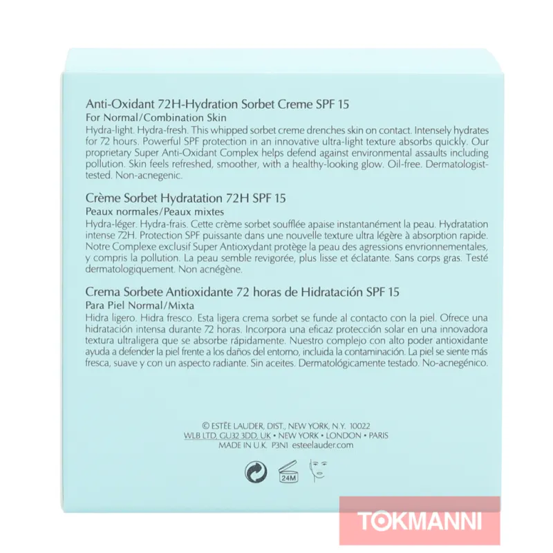Estee Lauder Daywear Anti-Oxidant 72h Hydration Sorbet SPF15 - это идеальный выбор для тех, кто хочет обеспечить своей коже свежесть и защиту на протяжении всего дня. Крем обеспечивает увлажнение до 72 часов и защищает кожу от вредных воздействий окружающей среды. Наслаждайтесь гладкой и здоровой кожей каждый день.