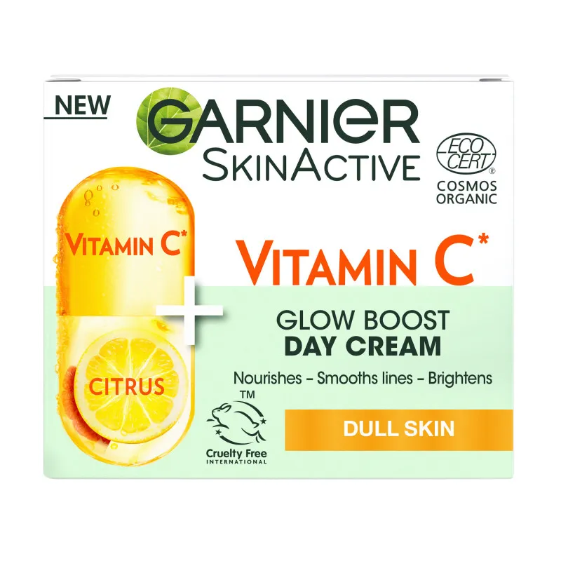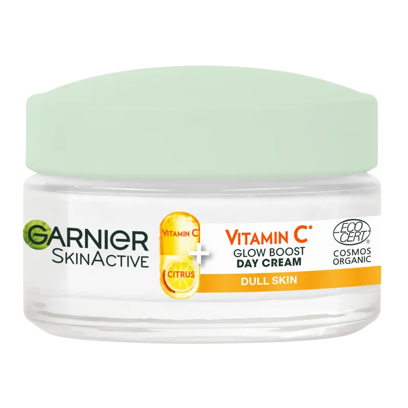 Дневной крем Garnier SkinActive с витамином C сертифицирован как органический и содержит концентрированное производное витамина C и цитрусовые. Его увлажняющая формула делает кожу питательной, гладкой и сияющей. Крем имеет сертификат Cosmos Organic, который подтверждает, что минимум 95% ингредиентов имеют натуральное происхождение, а минимум 20% выращены органически.