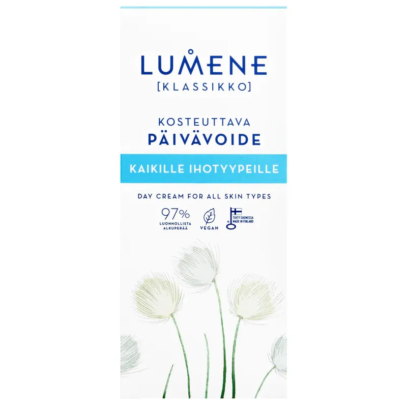 Lumene KLASSIKKO Увлажняющий Дневной Крем обеспечивает идеальное увлажнение, быстро впитывается и оставляет кожу свежей и здоровой на вид. Подходит для всех типов кожи. Формула не содержит минеральных масел, парабенов и формальдегидов. Объем упаковки 50 мл.