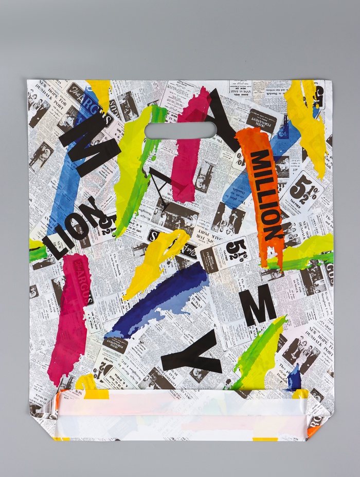 Графичный акцент для творческих покупок. Пакет с вырубной ручкой «АРТ Газета», 38x45 см — это вместительная и прочная упаковка с типографским дизайном. Ее динамичный принт подходит для магазинов с современной и творческой атмосферой.