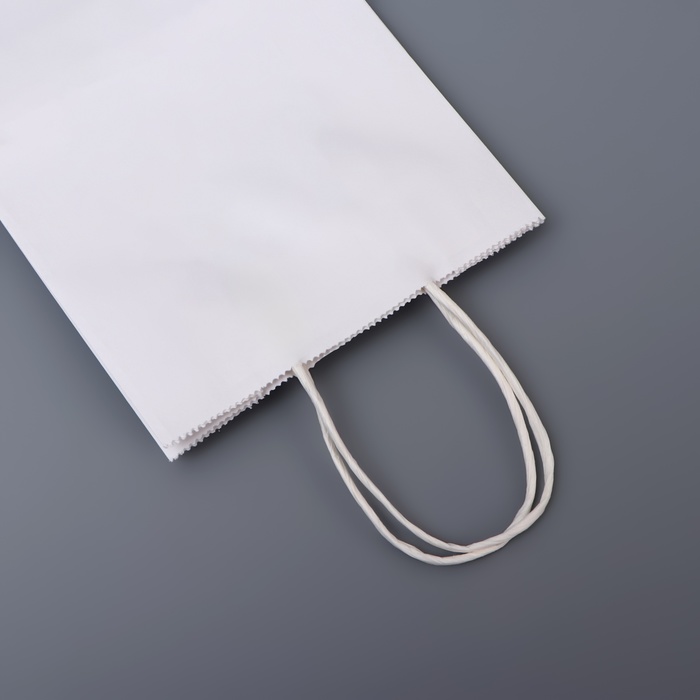 Чистый белый цвет пакета придает ему универсальный и элегантный вид, делая его идеальным для подарков, покупок или корпоративных мероприятий. Круглая ручка, выполненная из прочного материала, обеспечивает удобное и комфортное держание, позволяя легко переносить пакет.