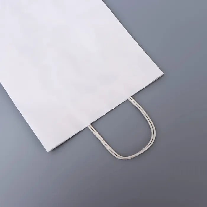 Белый бумажный пакет без печати с круглой ручкой и плотностью 120 г/м² — это стильное и экологичное решение для упаковки и переноски различных товаров. Изготовленный из прочной бумаги с плотностью 120 г/м², этот пакет отличается высокой устойчивостью к разрывам и износу, обеспечивая надежную защиту содержимого.