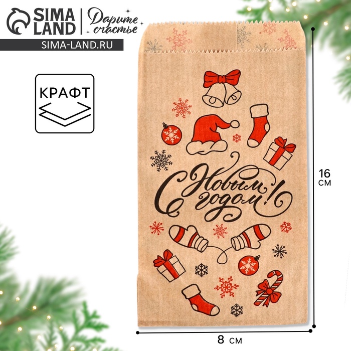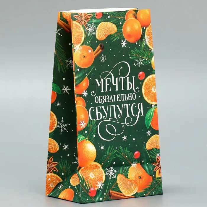Пакет без ручек «Мечты обязательно сбудутся», 10 х 19.5 х 7 см, Новый год — Характеристики