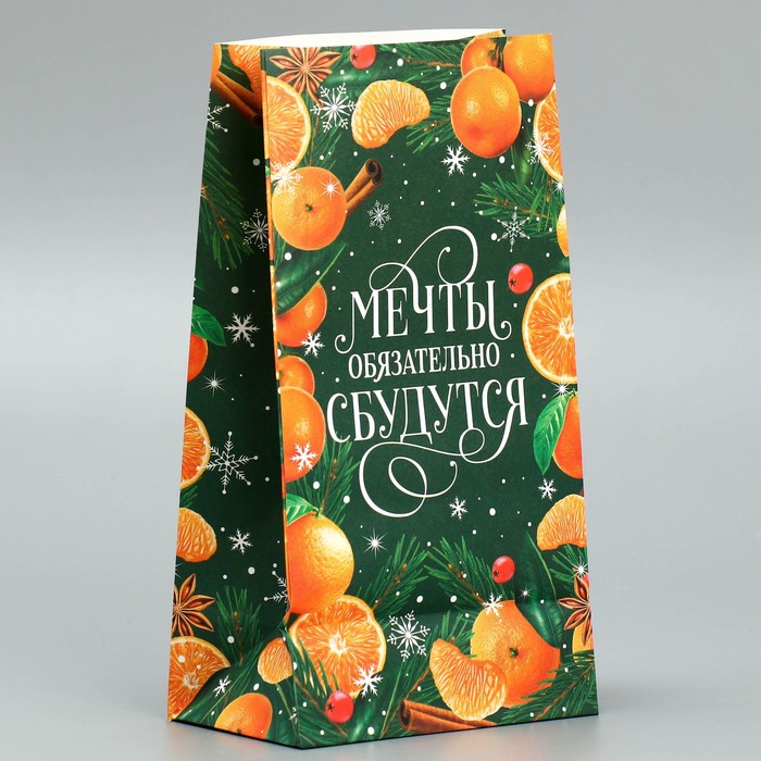 Пакет без ручек «Мечты обязательно сбудутся», 10 х 19.5 х 7 см, Новый год — Характеристики