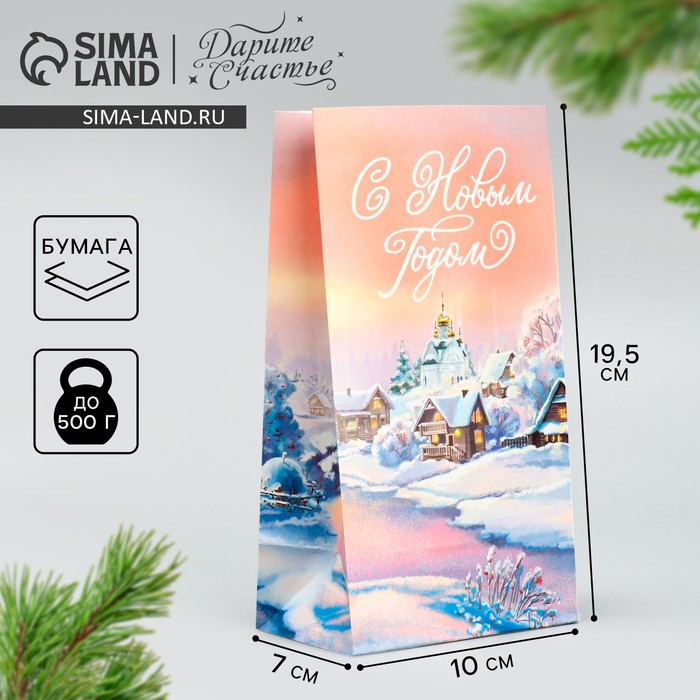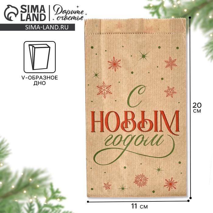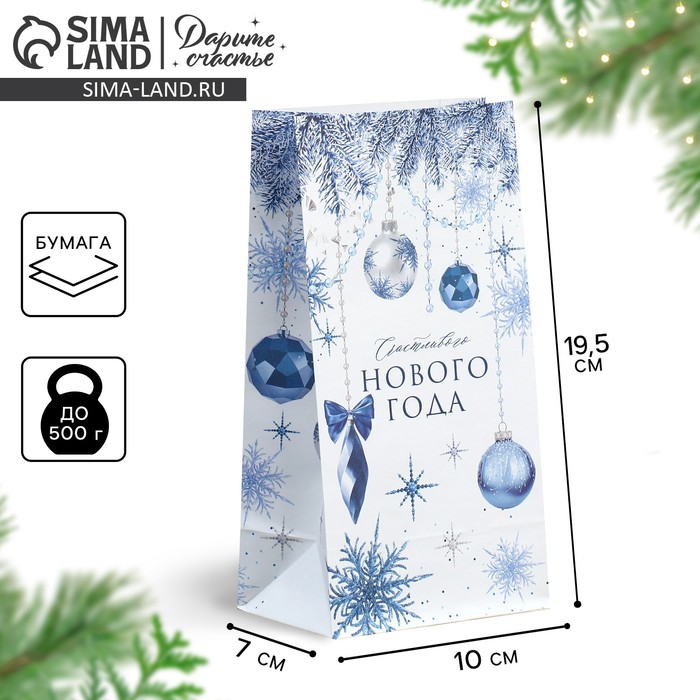 Пакет без ручек «С Новым годом», веточка ели, 10 х 19.5 х 7 см, Новый год — Характеристики