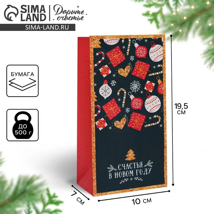 Пакет без ручек «Счастья в Новом Году», 10 х 19.3 х 7 см — Характеристики