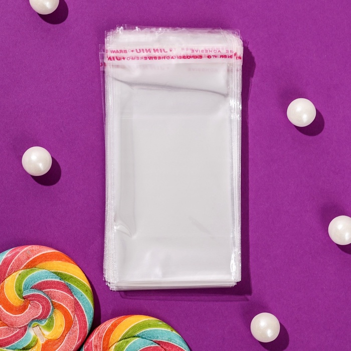 Пакет БОПП с клеевым клапаном, прозрачный для фасовки и упаковки, 6×8/4 см, 25 мкм