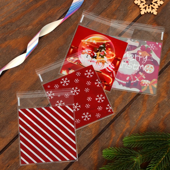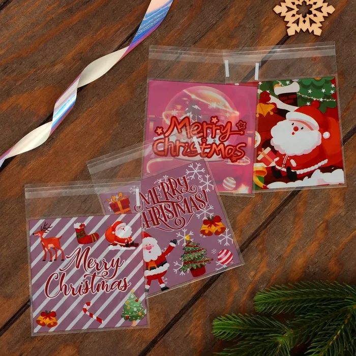 Пакет БОПП с липкой лентой, «МИКС новогодний», 10×10+3 см — Характеристики