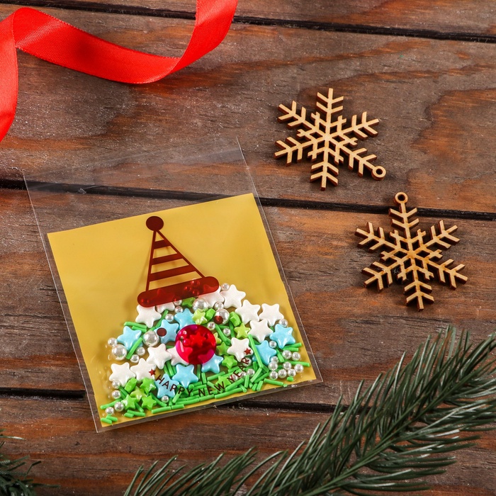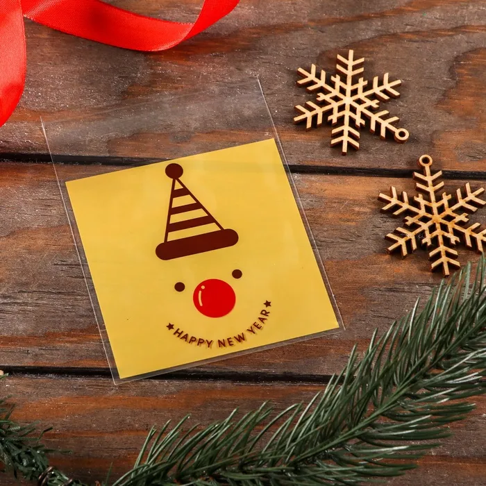 Пакет БОПП с липкой лентой, «С Новым Годом», 10×10+3 см — Характеристики
