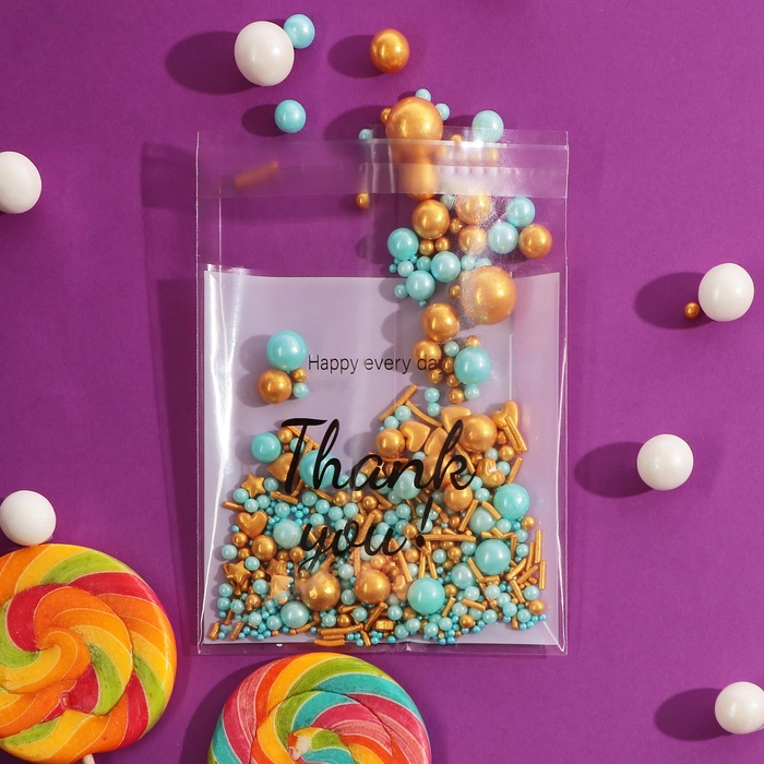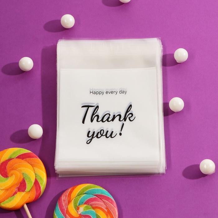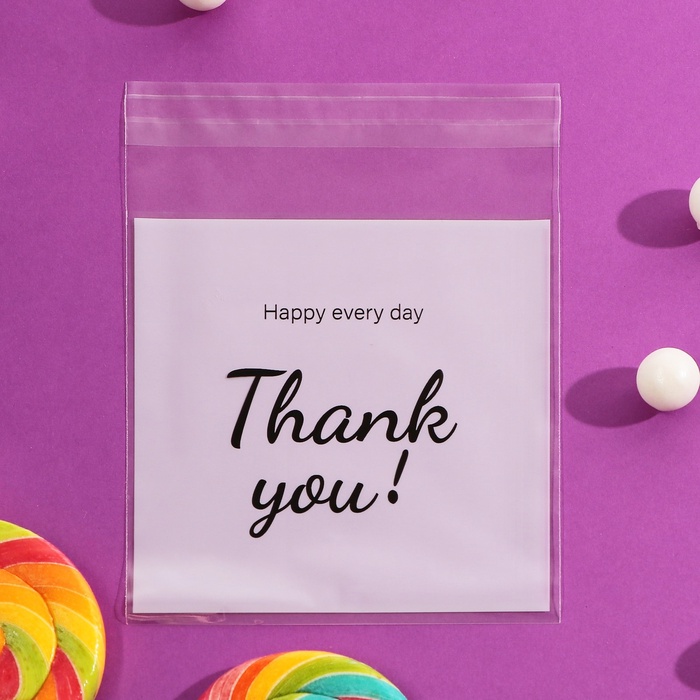 Пакет БОПП с липкой лентой, «Спасибо», 10×10+3 см — Характеристики