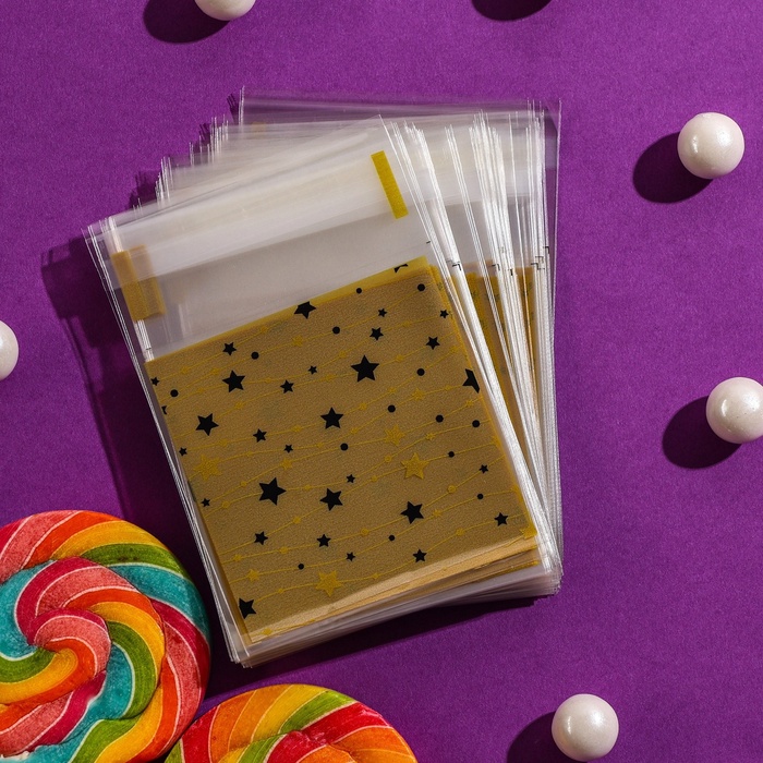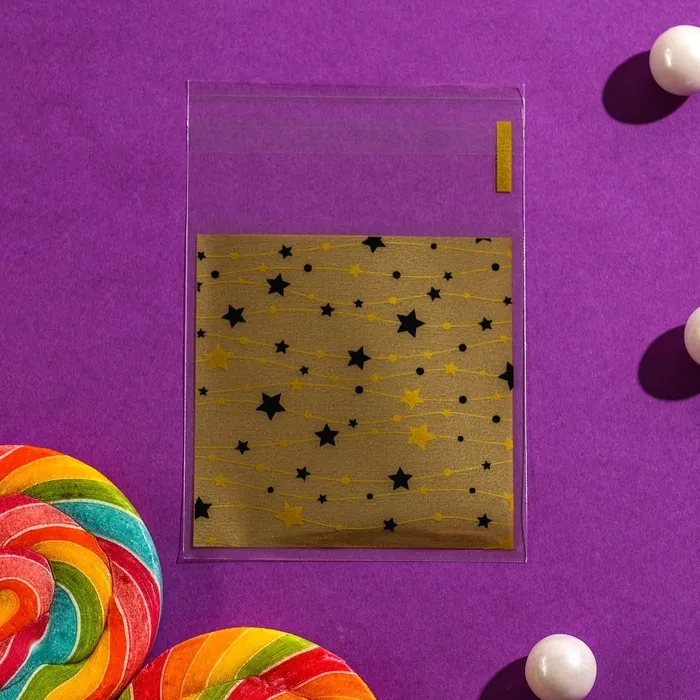 Пакет БОПП с липкой лентой, «Звездочки», 7×7+3 см — Характеристики