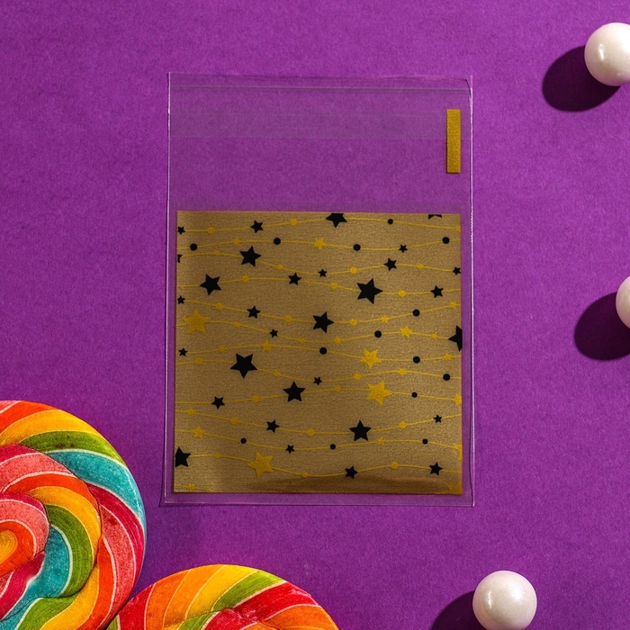 Пакет БОПП с липкой лентой, «Звездочки», 7×7+3 см